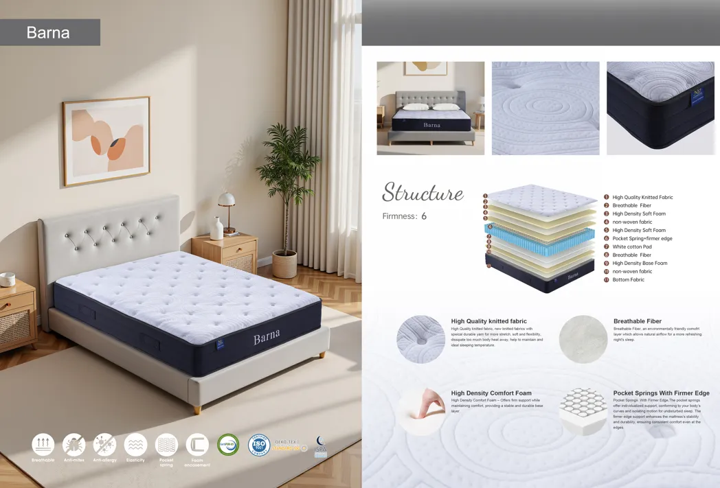 Whether you're upgrading your bedroom or furnishing a guest room, the Barna Mattress Collection offers a balanced blend of comfort and support for a rejuvenating sleep experience.
