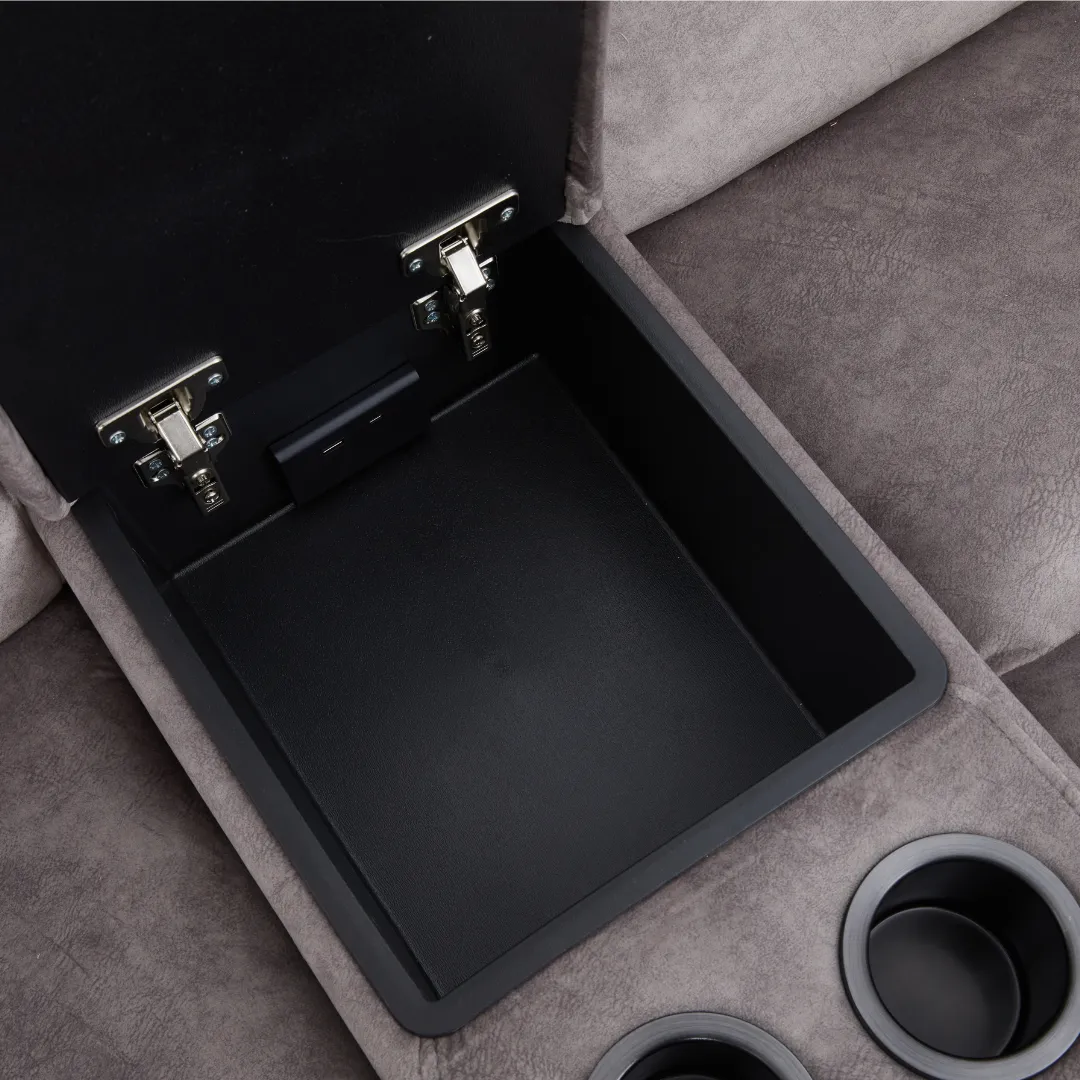 A standout feature of the Aston range is the integrated console table, complete with built‑in cup holders. Perfect for movie nights or relaxed evenings at home, this thoughtful addition keeps drinks and essentials close at hand without compromising the clean, stylish design.