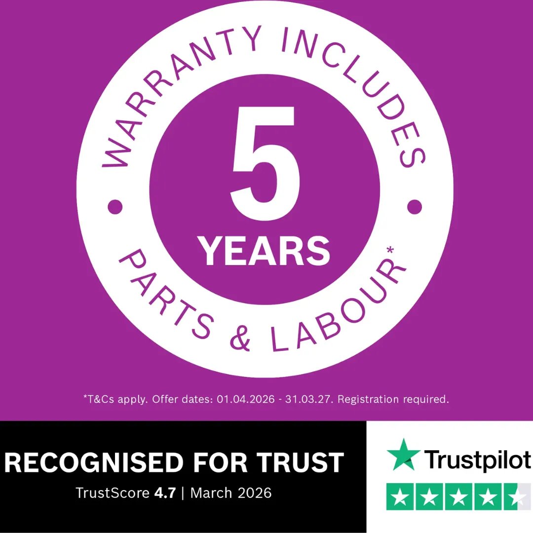 The intuitive control layout makes everyday operation simple, while the spacious oven cavity provides ample room for family meals or entertaining. Built with Bosch’s renowned engineering standards, the Series 4 range focuses on durability, efficiency, and long‑term reliability.