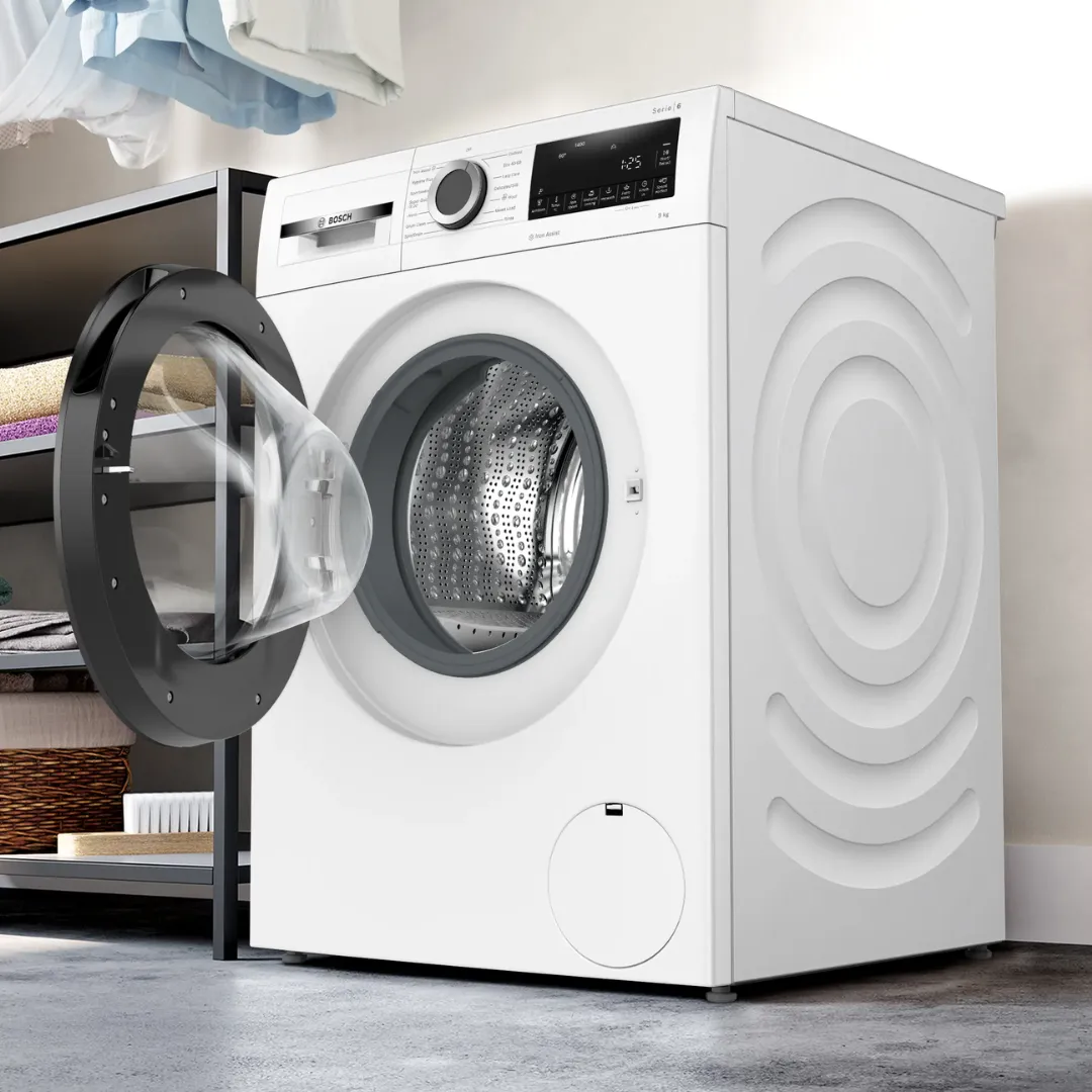 The sleek white finish gives the machine a clean, modern look that fits seamlessly into any utility room or kitchen. Built with Bosch’s renowned engineering, the Series 6 range is known for reliability, durability, and quiet operation, making it ideal for busy households.