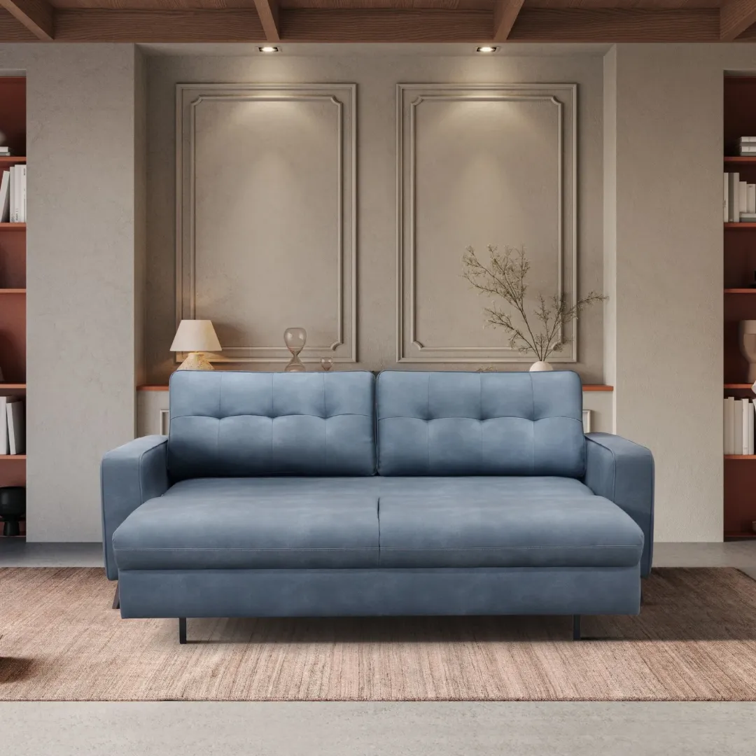The Madrid Sofabed is a contemporary centerpiece that combines the comfort of a sofa with the convenience of a bed. Upholstered in soft, durable fabric, it features a sleek silhouette with gently tufted back cushions and slim armrests for a sophisticated look. The easy-to-use pull-out design converts the sofa into a spacious bed in seconds, making it ideal for overnight guests or cozy lounging.