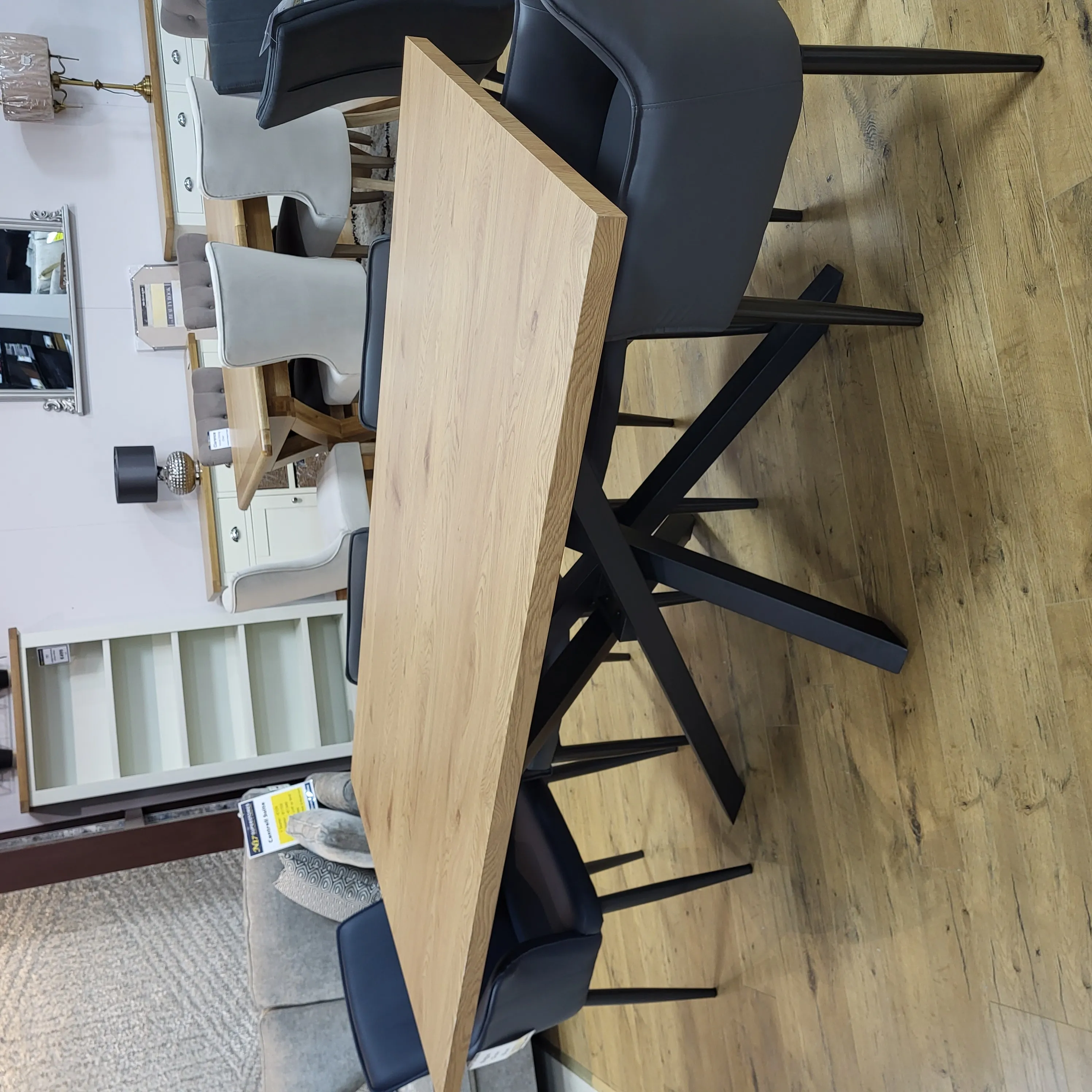 Delivery & ReturnsIntroducing the Ronan Dining Table, a perfect blend of contemporary design and timeless elegance. Measuring 1800 x 900 x 760 mm, this table features a light wood veneer top that brings a natural and warm touch to your dining space. The thick table top adds a sense of robustness and durability, making it ideal for everyday use. Supported by black modern cross legs, the Ronan Dining Table combines style and stability, creating a striking focal point in any dining room.