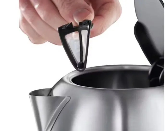 Delivery & ReturnsA stylish and functional kitchen appliance. With a 1.7-liter capacity, it features a brushed stainless steel finish, a perfect pour spout to prevent splashing, and a rapid boil zone for efficiency. The kettle includes an illuminated on/off switch, a push-to-open lid, a water window for easy monitoring, a 360° base with cord storage, and a removable, washable filter to ensure clean water.