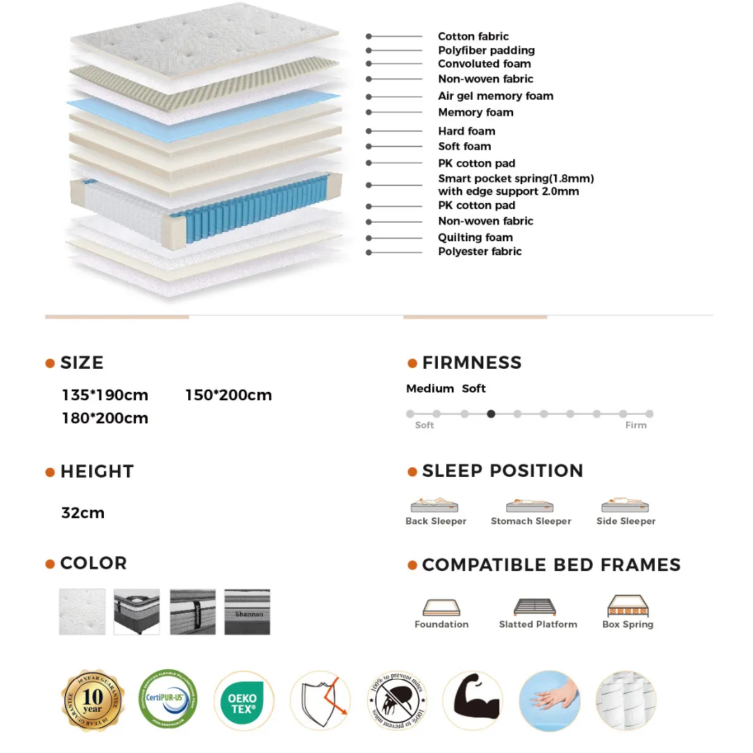 Shannon 32cm Premium Pillow‑Top Gel Memory Foam Pocket Sprung Mattress – Medium Soft