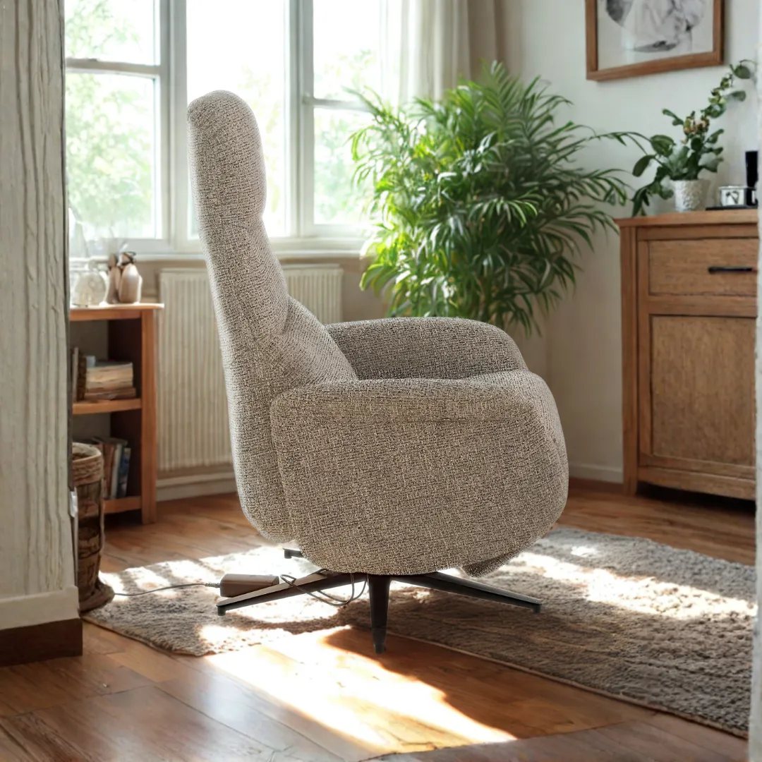Bring contemporary comfort into your home with the Lucca Electric Swivel Chair, a beautifully crafted recliner designed for relaxation, style, and everyday ease. Available in light green or light grey, this chair blends seamlessly into bright, airy interiors, creating a calming focal point in any living room, reading nook, or lounge space.