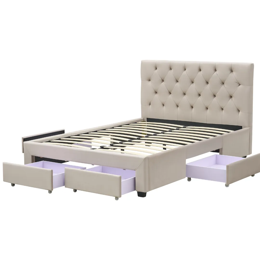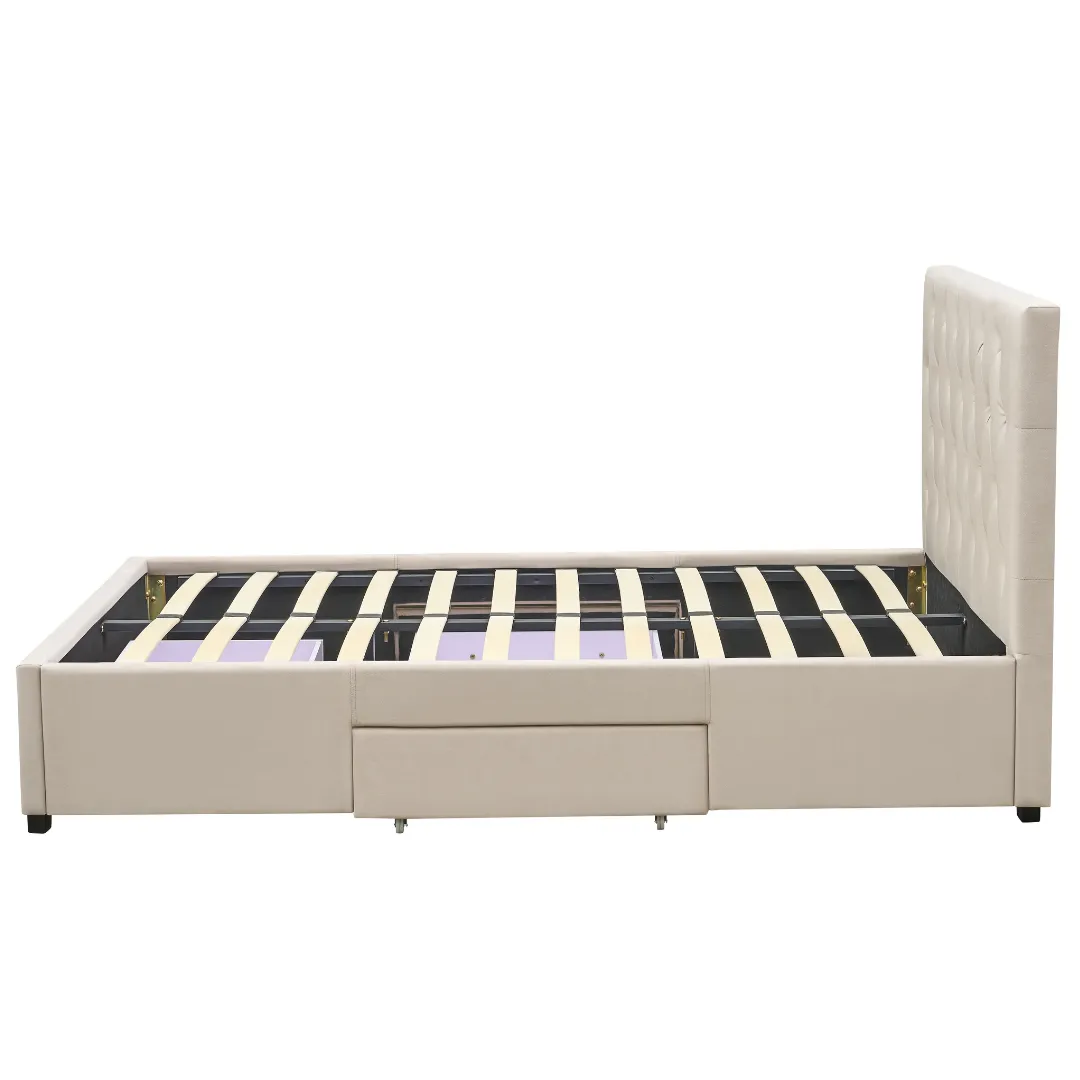 The James Bedframe combines timeless elegance with practical functionality, making it the perfect centerpiece for any modern bedroom. Upholstered in a sophisticated taupe fabric, this bedframe features a beautifully tufted headboard with a diamond pattern that adds a touch of luxury and comfort. Designed with integrated storage drawers, the James Bedframe offers a smart solution for maximizing space without compromising on style.