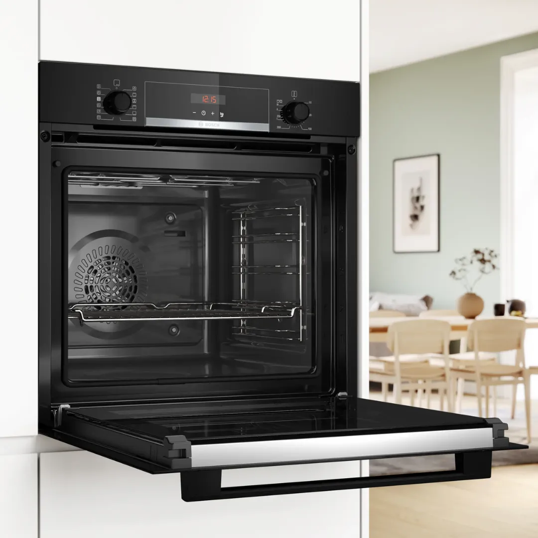 Delivery & ReturnsUpgrade your kitchen with the Bosch HQA574BB3B Series 4 Built‑In Oven, designed to deliver reliable cooking performance with added versatility. Finished in sleek black, this oven brings a modern, understated look that integrates seamlessly into contemporary fitted kitchens.