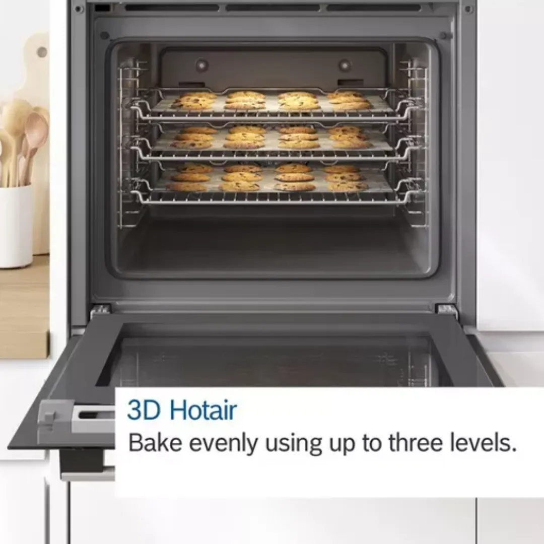 Designed to fit seamlessly into built‑in cabinetry, this Bosch oven offers even heat distribution and consistent cooking results, allowing you to cook with confidence every day. From perfectly roasted meals to evenly baked desserts, it provides the control and reliability you expect from a trusted German engineering brand.