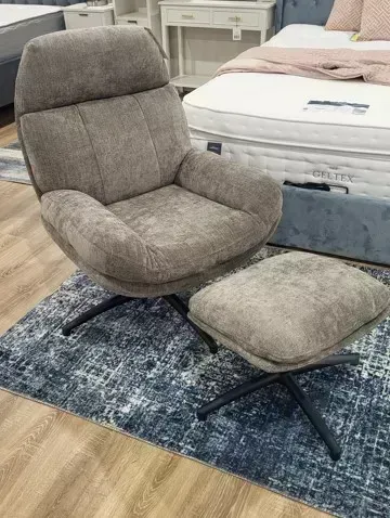 Delivery & ReturnsThe Caleb Swivel Chair & Footstool in Grey is the perfect addition to your home or office, offering an invitation to sink in, put your feet up, and enjoy hours of unparalleled comfort. Upholstered in a luxurious soft material, this chair features a tall back for excellent support, low scrolled armrests for added style and comfort, and plush cushioning that ensures your comfort expectations are not only met but exceeded every time you take a seat. With the ability to swivel 360 degrees, the Caleb chair combines style and convenience.