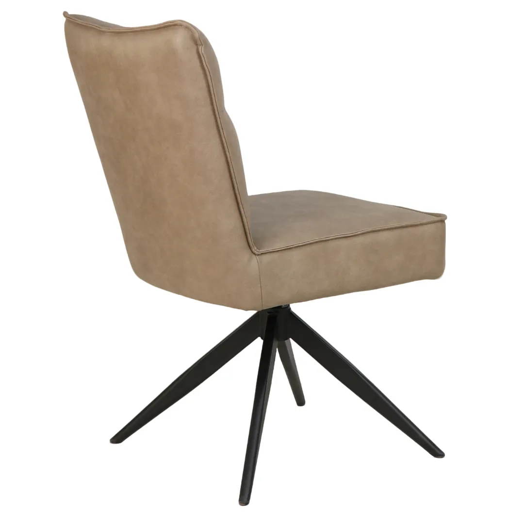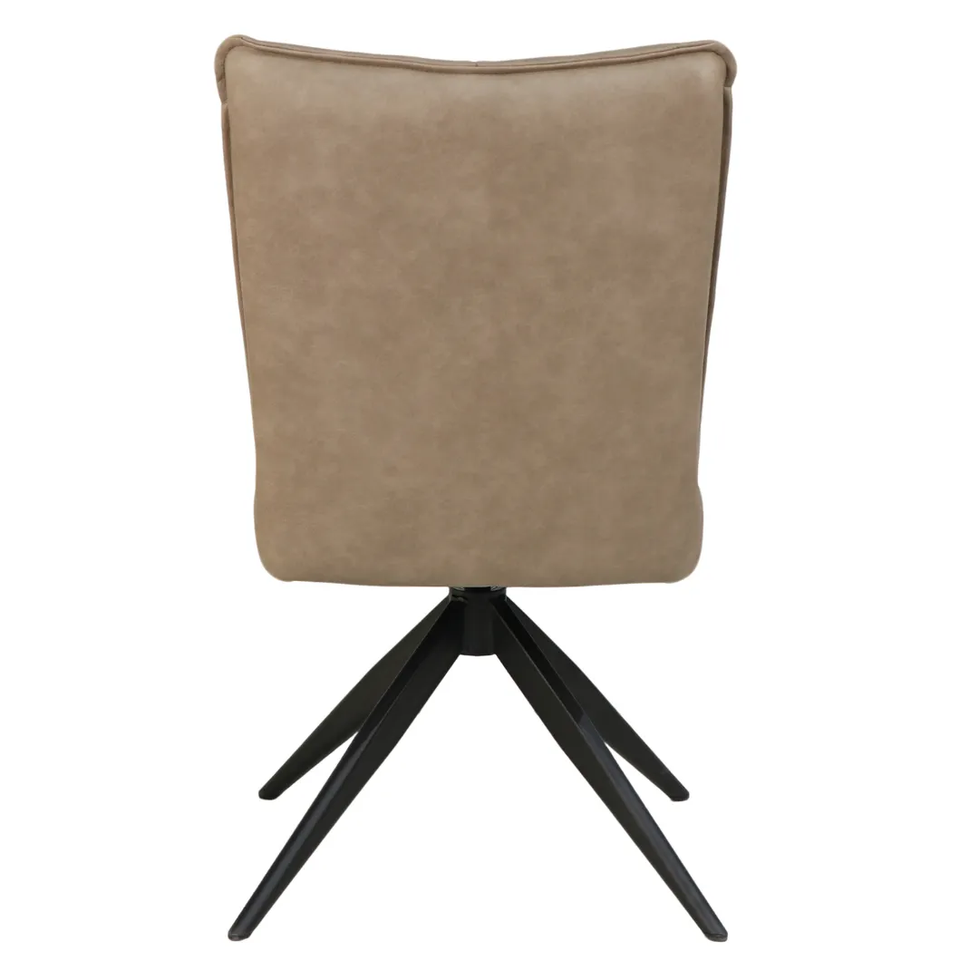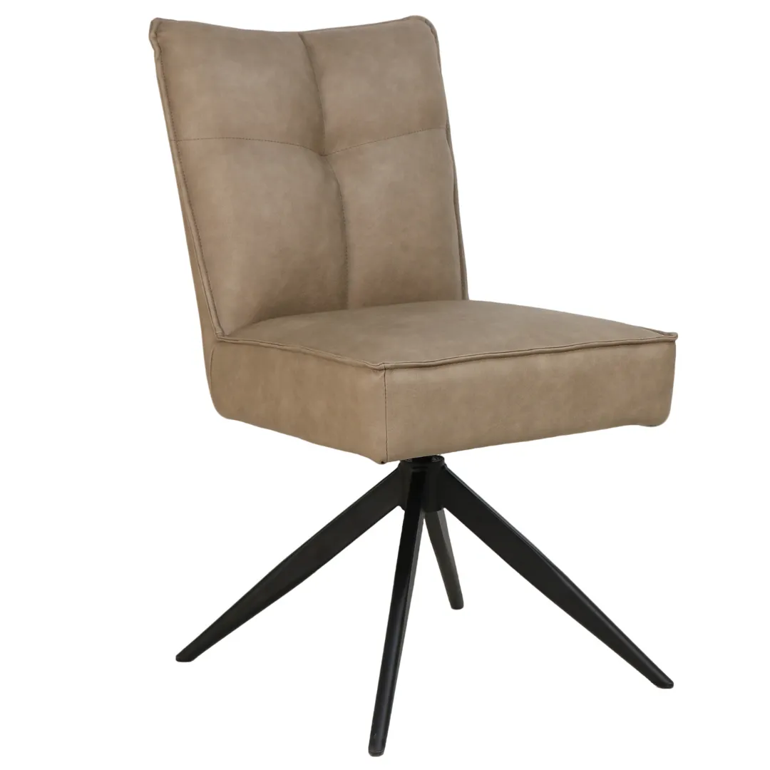 Upholstered in your choice of textured fabric (Rust, Brown) or soft-touch faux leather (Grey, Taupe), the Carlton chair offers a look to complement any interior. The design is completed with striking black powder‑coated metal legs in a splayed star‑base formation, giving the chair a sleek yet sturdy presence.