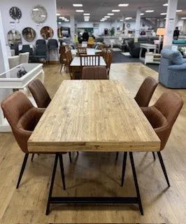 Elevate your dining experience with the Dakota Dining Table, where rustic elegance meets industrial flair. Crafted with precision, this table features a spacious surface, perfect for hosting everything from cozy family dinners to lively dinner parties. The natural wood tabletop showcases rich grain patterns and a warm finish, beautifully contrasted by sturdy black metal legs for a look that’s both timeless and contemporary.