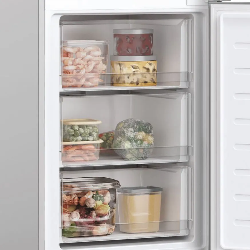 The Hoover HOCE4T618ESK-1 is a stylish and efficient freestanding fridge freezer designed to meet the needs of modern kitchens. With its sleek silver finish and spacious design, this appliance not only enhances the aesthetic of your kitchen but also provides ample storage for all your groceries. The Total No Frost technology ensures that you never have to manually defrost your freezer again, making maintenance a breeze.
