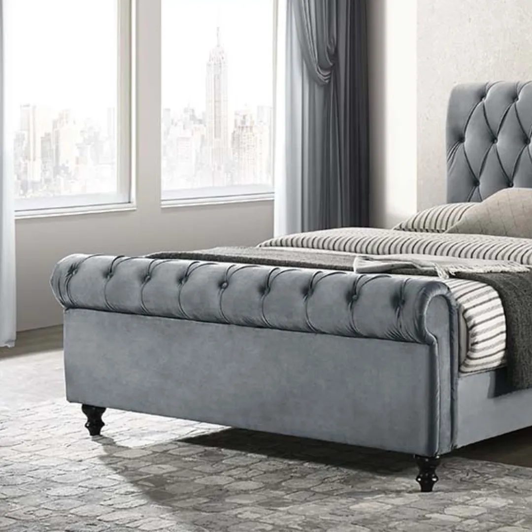 • Velvet Upholstery: Wrapped in plush velvet, the bedframe provides a soft, inviting texture that enhances your sleeping experience.