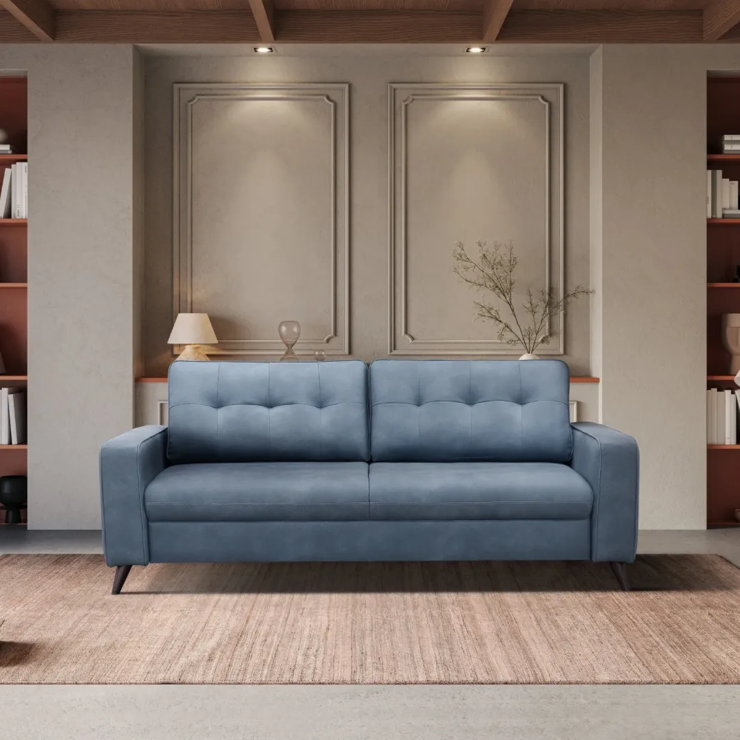 The Madrid Sofabed is a contemporary centerpiece that combines the comfort of a sofa with the convenience of a bed. Upholstered in soft, durable fabric, it features a sleek silhouette with gently tufted back cushions and slim armrests for a sophisticated look. The easy-to-use pull-out design converts the sofa into a spacious bed in seconds, making it ideal for overnight guests or cozy lounging.