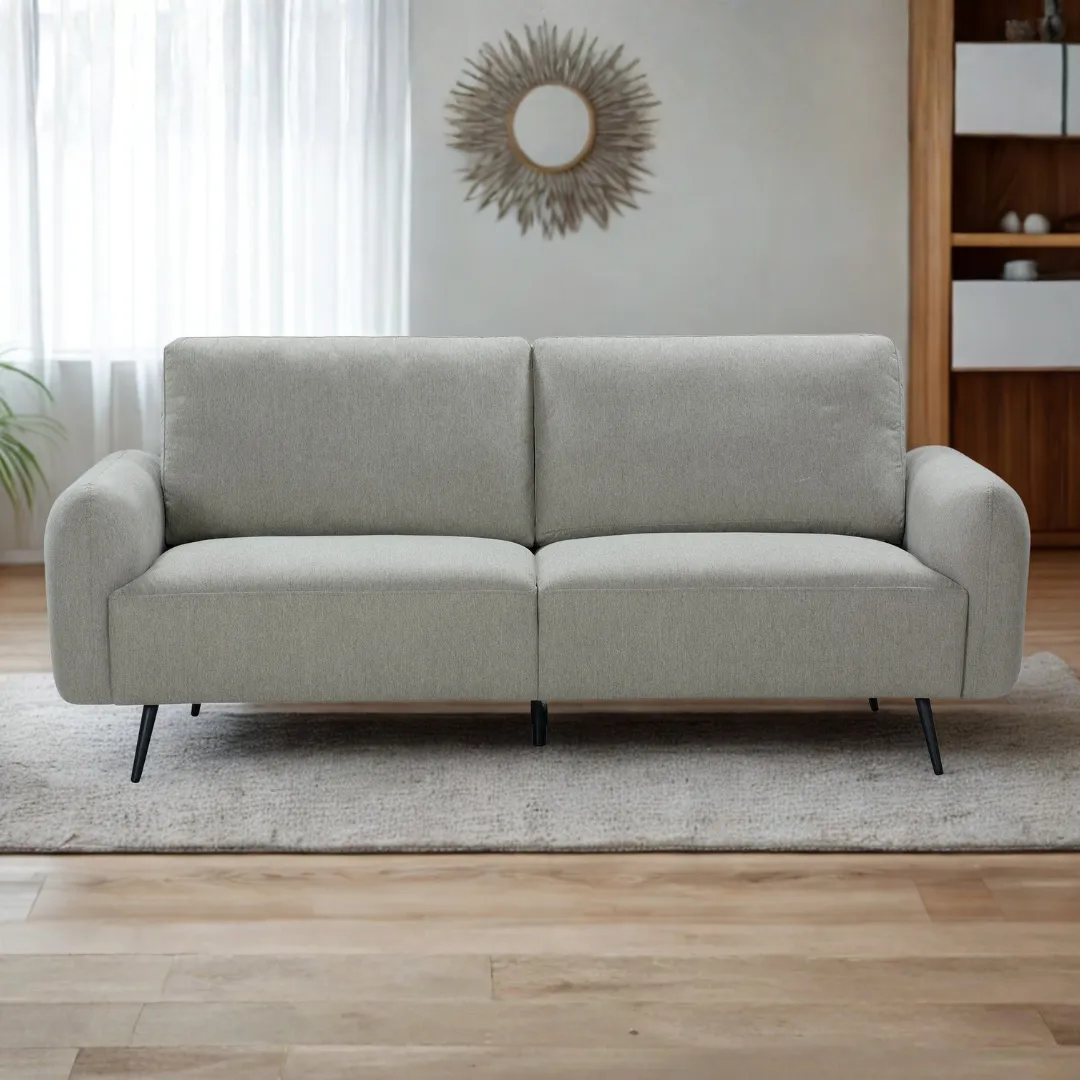 Upholstered in a soft‑touch woven fabric, the Paris offers a refined look while remaining practical for daily use. Gently rounded arms, supportive seat cushions and a structured backrest create a sofa that feels just as good to sit on as it looks. Slim, black metal legs elevate the design, giving the sofa a light, airy feel while adding durability and stability.