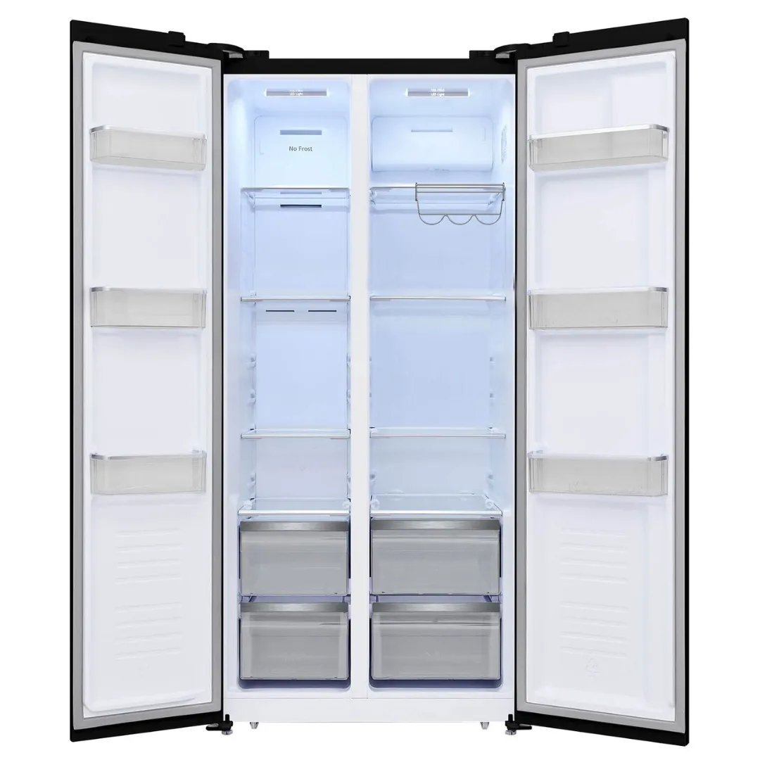 Experience premium cooling performance and contemporary style with the Powerpoint P98317SKBLG‑E Side‑By‑Side Fridge Freezer. With its striking black glass finish, generous storage capacity, and advanced no‑frost technology, this American‑style appliance is designed to bring both functionality and elegance to modern kitchens.