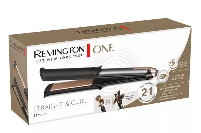 Delivery & ReturnsThe Remington ONE Straight & Curl Styler (S6077) is a versatile all-in-one hair styling tool designed to create a variety of looks with ease. Whether you want smooth, straight hair or bouncy curls, this styler has you covered. It features FlexiCovers that allow you to switch seamlessly between straightening and curling modes. In Straight Mode, the 110mm advanced ceramic-coated plates with anti-static tourmaline ensure smooth, snag-free styling. For Curl Mode, the 32mm heated curling barrel helps you achieve soft, beachy waves or defined curls.