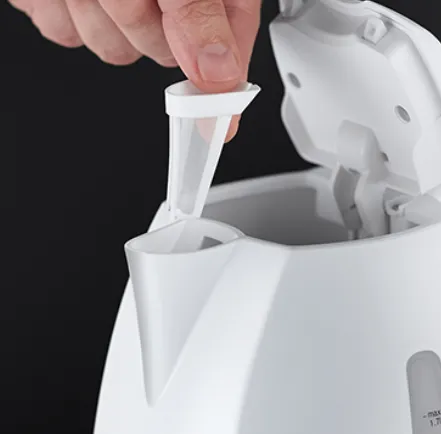 The kettle includes a removable, washable filter to ensure your water is clean and free from debris. Its perfect pour spout minimizes splashes and spills, keeping your work surface tidy. Additionally, the 360° base with integrated cord storage makes it convenient for both right and left-handed users.
