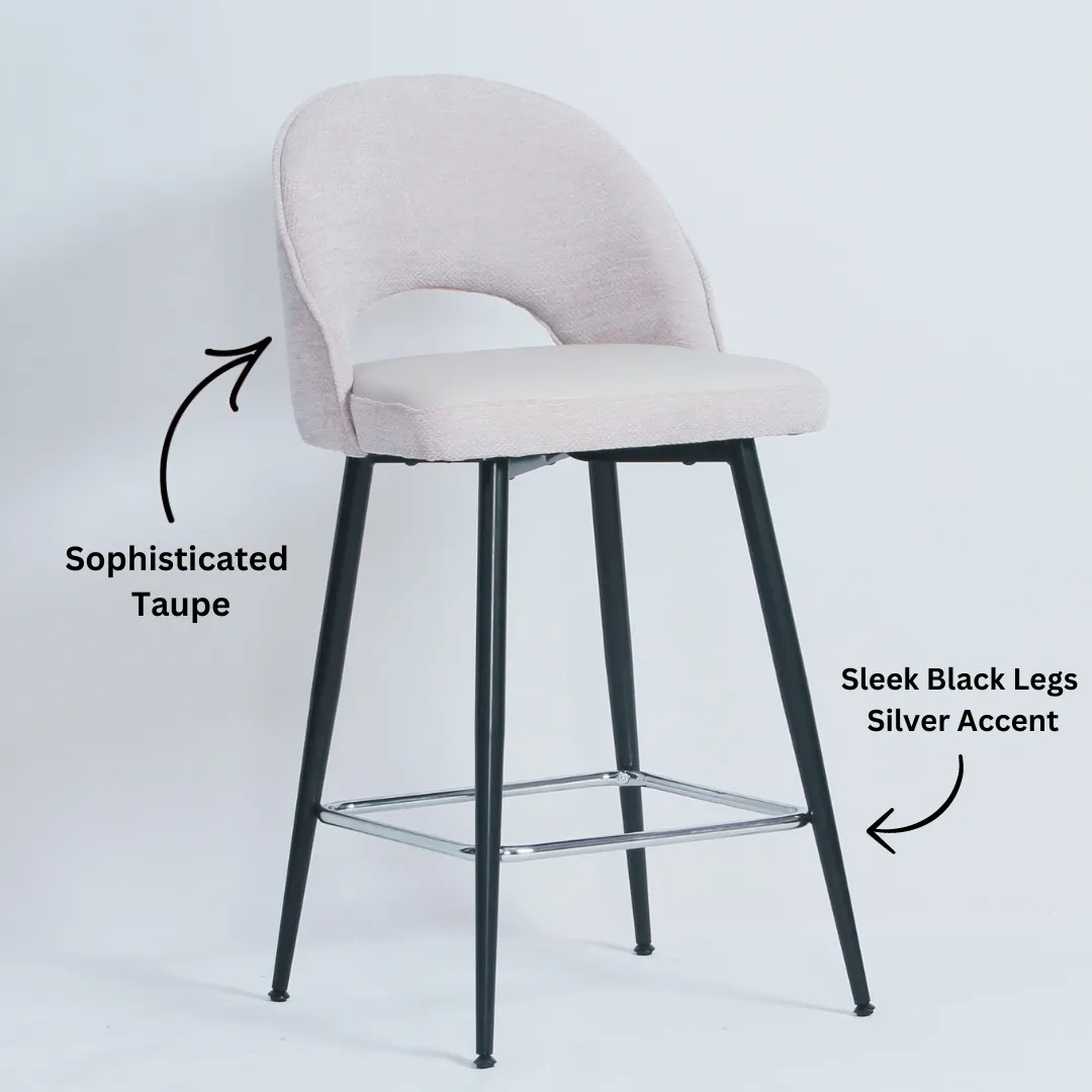Delivery & ReturnsIntroducing the Ryan Counter Stool, a masterpiece of luxury and sophistication. This elegant stool, available in a refined taupe color, is designed to elevate your kitchen or bar area with its stylish presence. The sleek black legs, accented with a touch of silver, add a modern flair that complements the stool’s overall elegance. Crafted for both comfort and style, the Ryan Counter Stool offers an inviting seating experience, making it perfect for long conversations and leisurely meals.