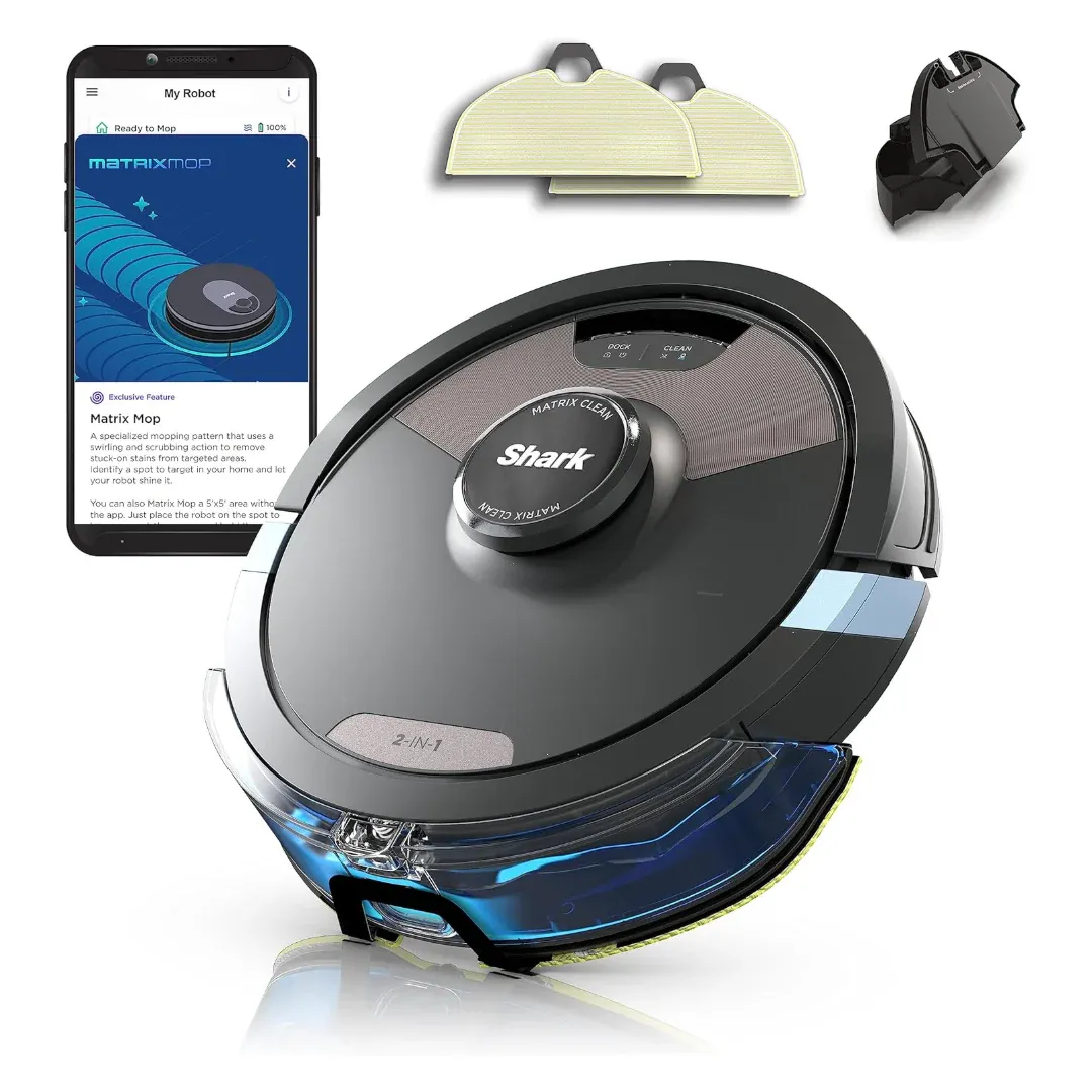 The Shark Matrix Plus is a cutting-edge 2-in-1 robot vacuum and mop that offers an unparalleled cleaning experience. It features the innovative Matrix Clean Technology, which ensures that every inch of your floors is meticulously cleaned through a precise matrix grid pattern. With its powerful suction and sonic mopping capabilities, it transitions seamlessly from carpets to hard floors, leaving your home spotless.