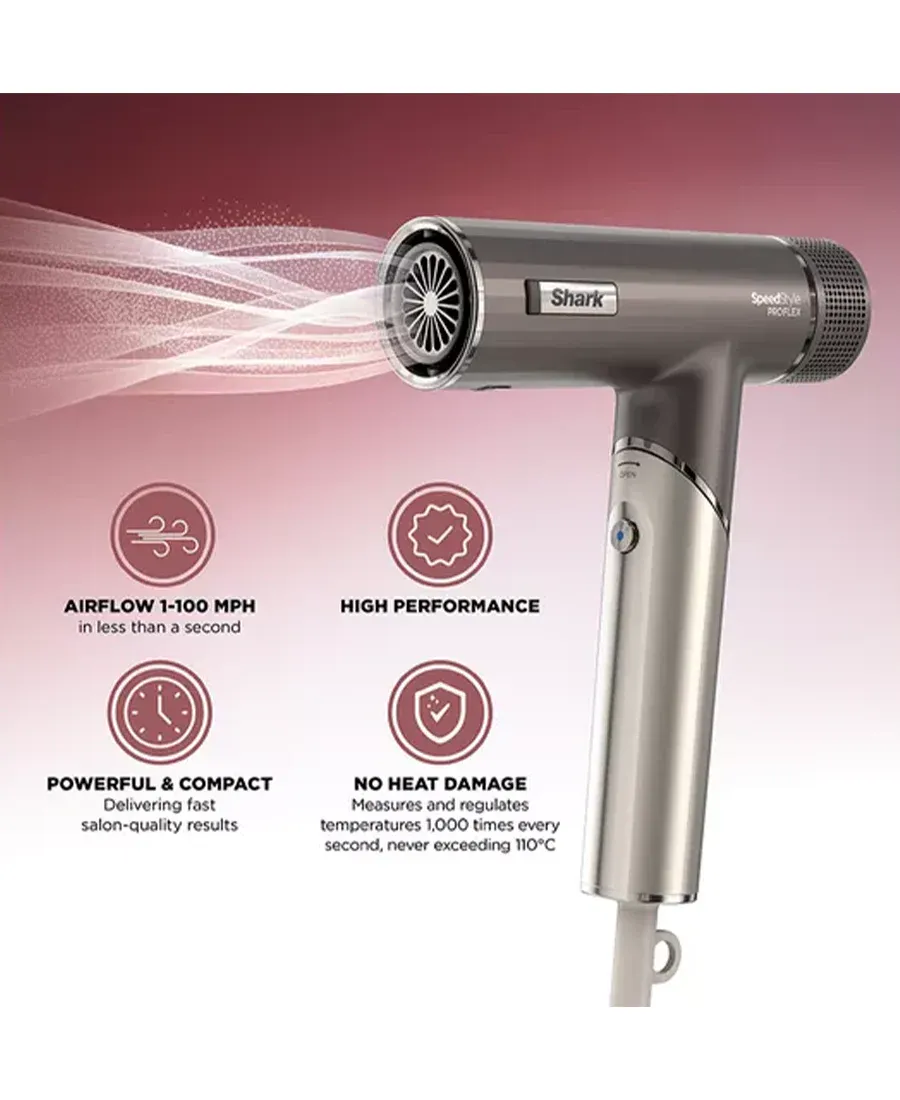 The Shark SpeedStyle Pro FLEX 4-in-1 High Velocity Hair Dryer System is perfect for anyone looking to achieve professional-level styling at home with ease and efficiency.