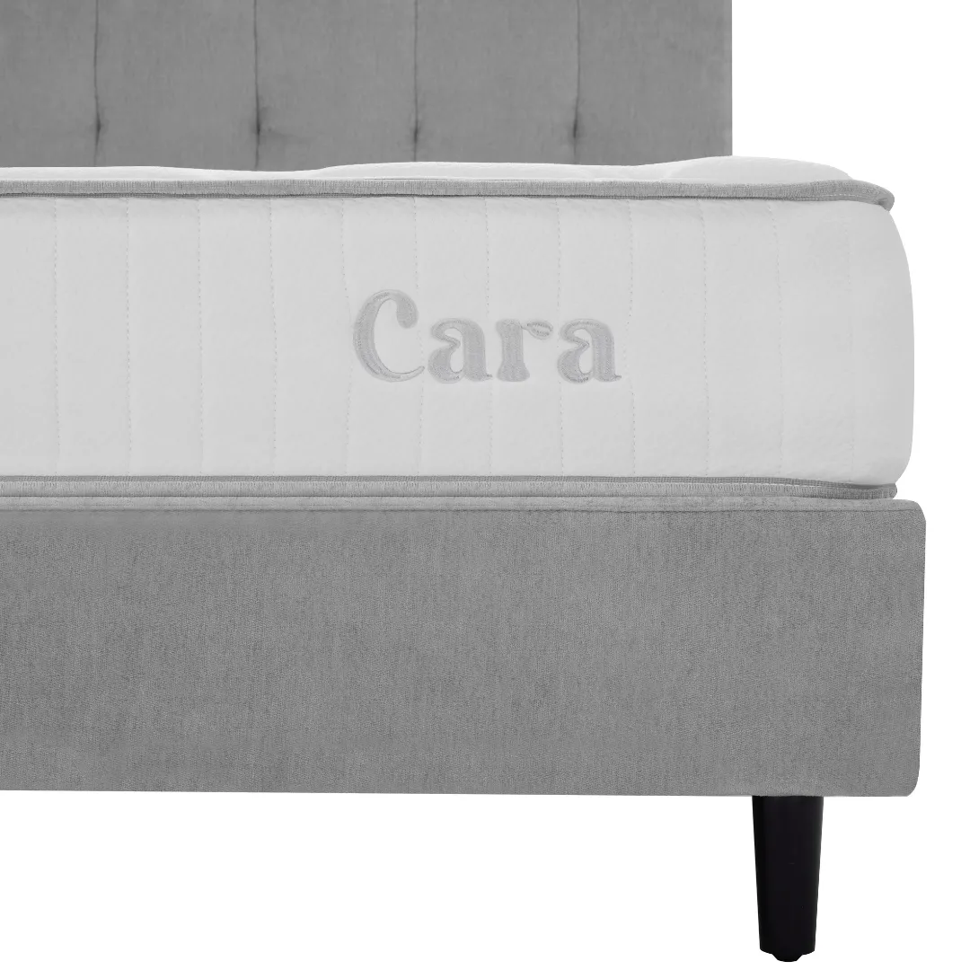 With an approximate height of 25cm, the Cara has a solid, supportive profile that sits comfortably on any standard bed frame. The side panels feature a textured white and grey fabric with reinforced stitching, adding durability and a polished, modern look.