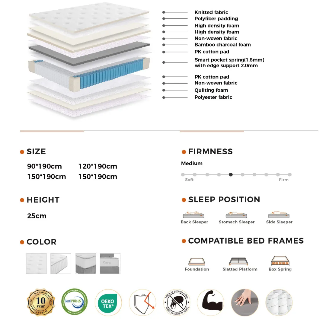The combination of foam comfort and spring support creates an excellent hybrid feel ideal for everyday use.