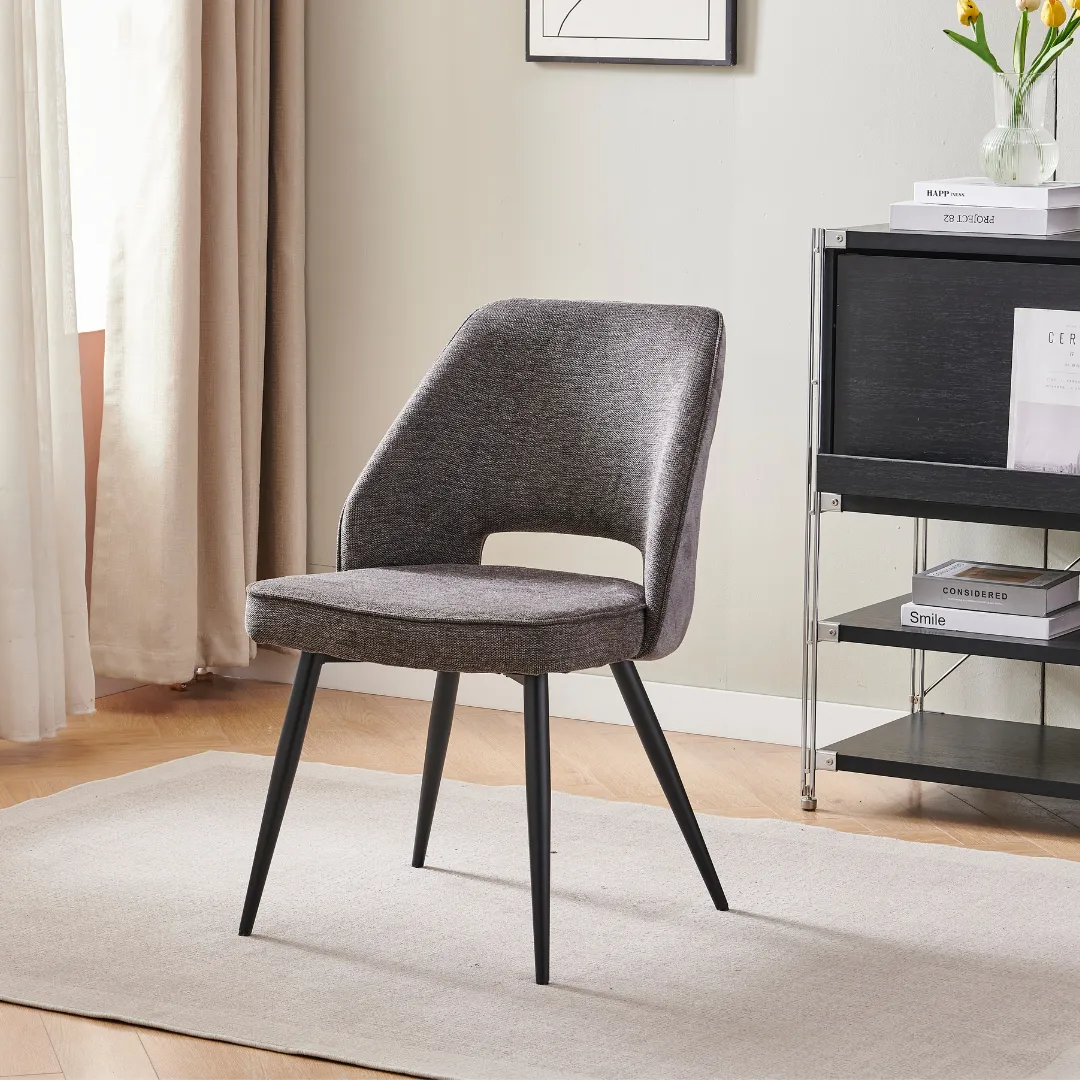 Supported by sleek black metal legs, the Sutton chair is as sturdy as it is stylish. Whether placed around a dining table, in a lounge, or as an accent in an office, it brings a polished, versatile elegance to any setting.