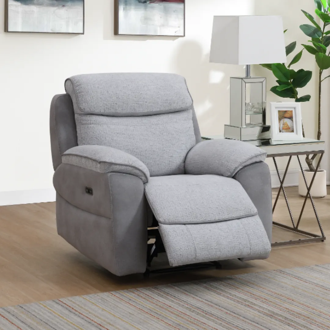 Upholstered in a soft yet durable fabric, Asher combines a modern look with a cosy, supportive feel. High back cushions provide excellent upper‑body support, while deep seats and padded armrests ensure lasting comfort whether upright or fully reclined. The power reclining mechanism allows you to find your ideal position at the touch of a button, making unwinding simple and effortless.