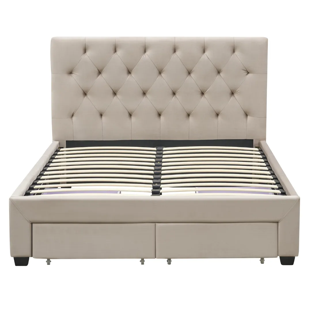 The James Bedframe combines timeless elegance with practical functionality, making it the perfect centerpiece for any modern bedroom. Upholstered in a sophisticated taupe fabric, this bedframe features a beautifully tufted headboard with a diamond pattern that adds a touch of luxury and comfort. Designed with integrated storage drawers, the James Bedframe offers a smart solution for maximizing space without compromising on style.